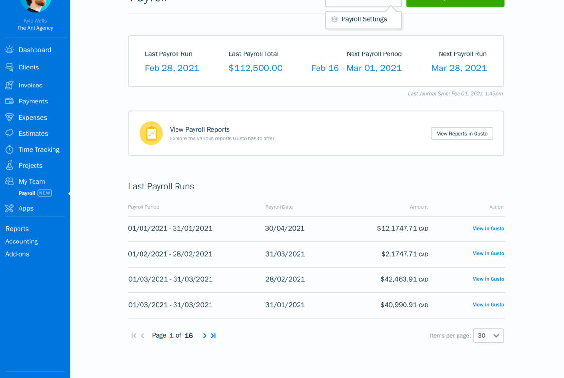 FreshBooks is a popular accounting and invoicing platform built for small businesses and freelancers. Its Gusto integration keeps your payroll data and business finances in the same place, reducing the gap between what you're paying your team and what shows up in your books. For service businesses that bill clients and manage a small team simultaneously, FreshBooks + Gusto is a natural pairing.