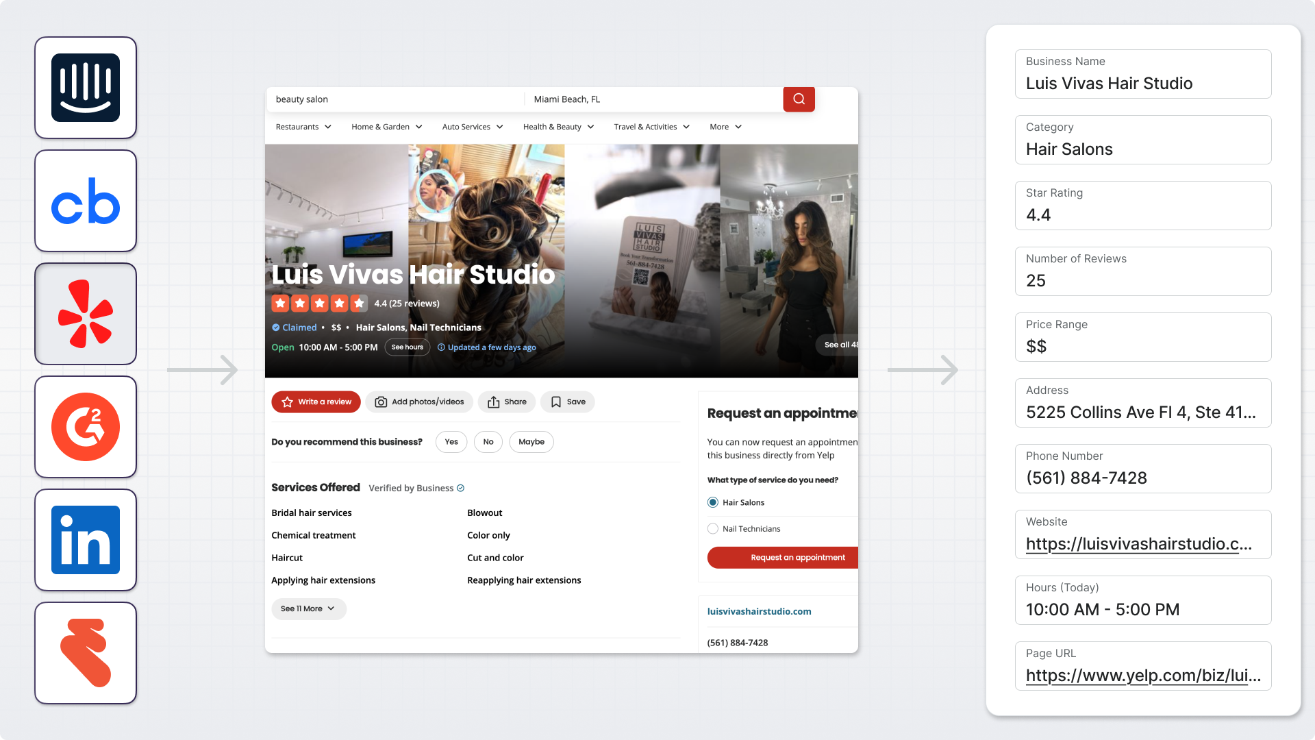 Traditional approaches to web scrape Yelp come with real friction. Scraping Yelp with Python using BeautifulSoup or Scrapy works until Yelp updates its markup or tightens its bot detection - then it breaks and requires developer time to fix. The Yelp Fusion API provides structured access to some data, but it's rate-limited, incomplete on review content, and requires API key management that most non-technical users can't navigate. If you've searched "scrape Yelp Python" or "BeautifulSoup scrape Yelp data" hoping for a clean solution, you know the path to working data is longer than it looks.