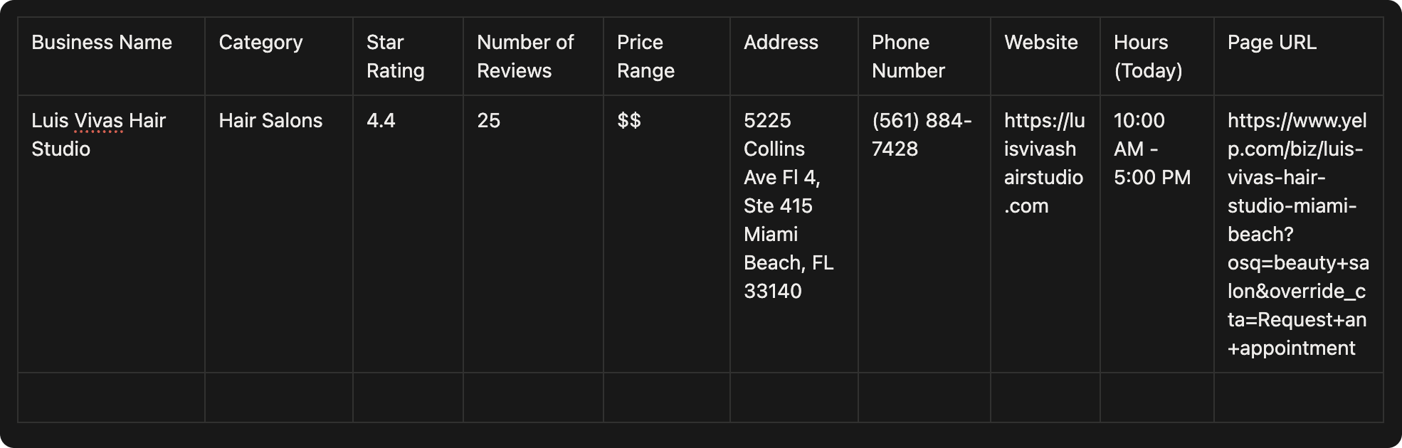 Local businesses monitoring their reputation. If your business has a hundred Yelp reviews, reading them one by one is painful and logging patterns manually is even worse. Scraping Yelp reviews into a spreadsheet lets you analyze sentiment trends, track how your average rating shifts over time, identify recurring complaints, and spot the specific experiences that drive five-star versus one-star reviews. That kind of structured analysis drives real decisions about operations, staffing, and customer experience - but only if you can get the data out of Yelp and into a tool where you can actually work with it.